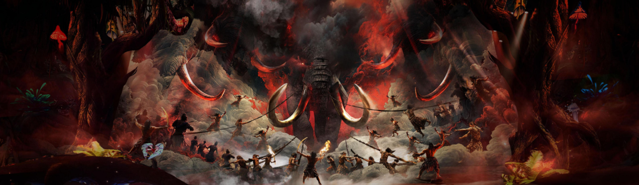场景设计充满奇幻色彩,神话传说中的神象、神秘的山川地貌等,一一呈现在观众眼前。观众在自由欣赏的过程中,可以尽情与场景中的元素进行亲密互动,从而成为剧情的参与者,感受惊奇与畅快的交织。