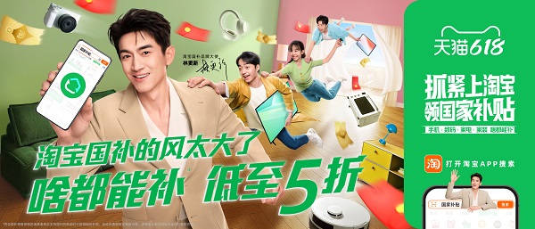 5月13日天猫618国补抢先购活动首日,淘宝率先打出王炸营销策略——官宣“九亿少女的梦”国民级艺人林更新为淘宝国补品牌大使,并在央视、线上主流APP及线下超50城投放魔性广告,洗脑式喊话全国消费者:“抓紧上淘宝领国家补贴!”,将“国家补贴+天猫618补贴低至5折”的大促力度政策强势触达亿万消费者。