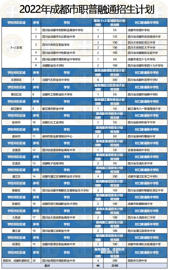 2022年成都市职普融通招生计划