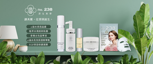 no.238源生美学,秉持“让美丽接2连3,8小时有感”的补水美肤理念,赋予e涵水双组合更完美的补水效能,让e+e>3,全面实现补水修护加抚纹,打造无敌水嫩肌肤。