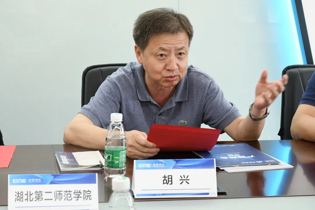 随后,校党委常委、副校长胡兴对金信润天二十余年的发展所取得的成就表示赞赏。胡校长表示,金信润天的职业教育理念与我校技术技能人才培养的理念相契合,希望通过此次访企拓岗促就业专项活动在学生实习实训、学生就业、以及科研等方面与金信润天开展更多的合作。相信在计算机学院人工智能助推基础教育平台下,基于国家产教融合相关政策,校企双方定能开展更深度的合作。