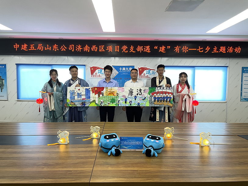 “天气炎热,‘娘家人’为我们准备了这么多精神食粮和清凉物资,让我们度过了一个难忘的七夕节。”随后,项目新员工为公司送上了亲手绘制的‘七夕礼物’。据作者小于介绍,长卷共有四个部分组成:新员工加入中建五局、全员秉承廉洁从业、项目对新员工的培养、与家人在自建的楼房内共度美好生活。这幅画卷代表了新员工对公司的美好祝愿。最后,汪宇为长卷提“廉洁”二字,寓意全员廉洁从业,共创美好生活。