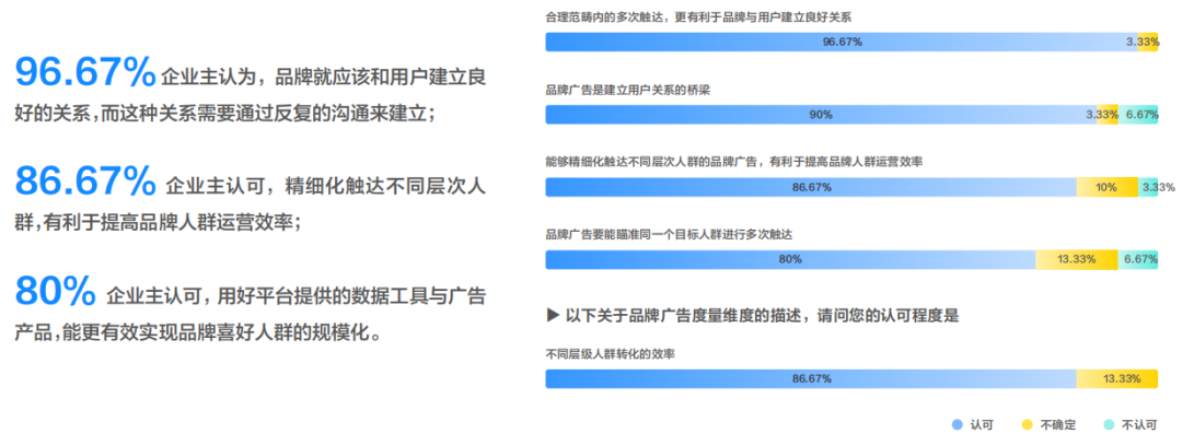 调研显示,实际上高达94%的企业主依然坚信品牌才是企业发展的护城河;超过70%的企业主在计划提高品牌广告的预算。