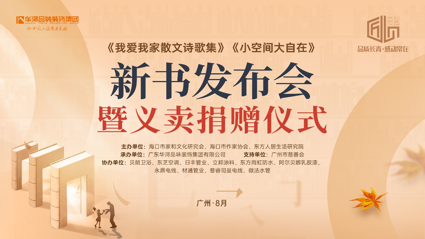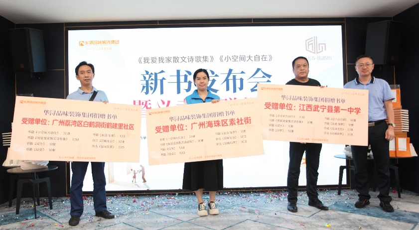 8月21日下午,华浔品味装饰集团重大文化项目——《我爱我家散文诗歌集》《小空间,大自在》新书发布会暨义卖捐赠仪式,在广州顺利举行。本次活动采用“线下+线上”方式开展,引发了社会各界的广泛关注,取得了良好的社会影响力。