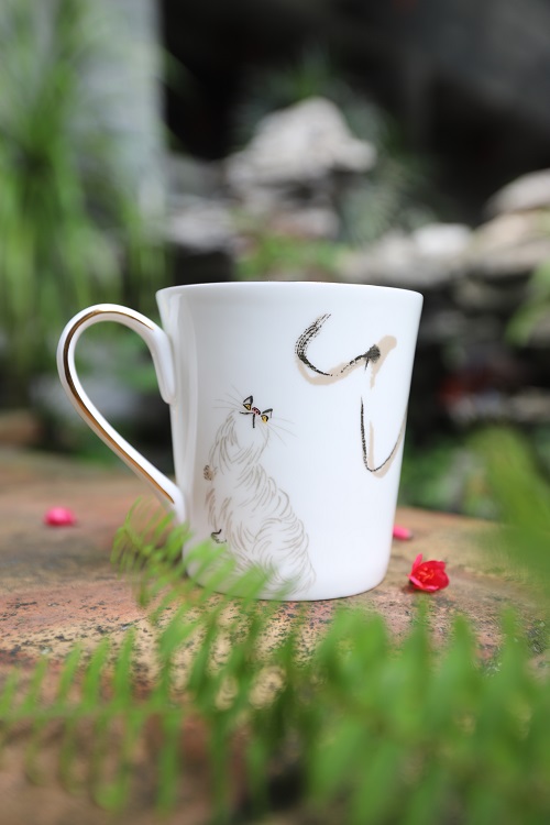 骨瓷马克杯图案来自齐白石大师画作《猫趣图》,大师笔下活泼可爱的猫形象刻画在立体的杯子上更生动有趣,画面更有层次感。简约,雅致的作品与洁白细腻的瓷质相映衬,富有观赏价值和实用价值。《猫趣》骨瓷马克杯齐家礼纪中的“齐家”意为齐家之道及齐白石艺术美学传承。