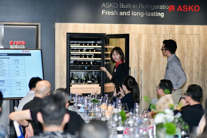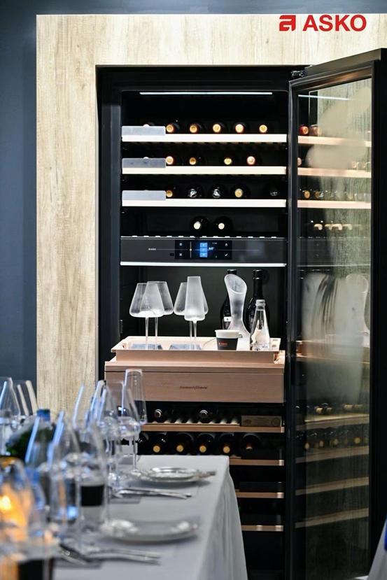 于醇境之地共赏智慧窖藏,于历史沉淀共品百味臻酿。在讲述酒品背后传奇故事的同时,刘巍然讲师也以专业侍酒师的身份向来访雅士现场科普餐酒搭配的基本原则,展示专业的葡萄酒品鉴方法,并精心选配顶级窖藏,佐以鲜盛至味,以一场舌尖上的芭蕾,带来奢享侍酒体验。斯洛文尼亚被誉为欧洲葡萄种植带心脏,ASKO于此奉上产自斯洛文尼亚四大酒庄的玛珊海藏桃红起泡,国窖巴尔达伯爵夫人起泡,仙鹤桃红年份起泡,葡图伊长相思干白,诗黛雅琼瑶浆橙酒,爱则奇陶罐赤霞珠干红,葡图伊百比诺1983年老酒与产自意大利的加伯莱阿奎莱斯长相思干白,加伯莱傲图莱弗斯科干红共九款臻选佳酿,ASKO智能三温区酒柜赋予其精准定位,轻松锁定佳酿位置,随时监控存酒状态;最多专业存储190瓶葡萄酒,打造恒温、恒湿、避震、避光、祛味的专业大容量储酒环境,独特精准控温技术激发酒品标志性口感,媲美专业酒窖,于赏味一瞬感受万般滋味。百年匠心工艺奢护至醇至厚,完美诉说醇香一世,高贵一生。迄今,ASKO智能三温区酒柜共申请了专利23项,其中发明专利18项,也获得了代表全球工业设计最高水平的2021年德国IF设计金奖,得到了国内外的广泛认可。