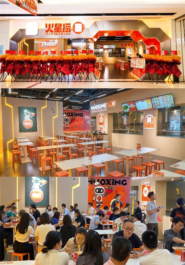 火星捞面着眼未来科技餐饮发展新趋势,首店坐落于广州核心商圈花城汇南区,彰显优质前卫、创新智造的品牌形象。地段得天独厚,交通网络四通八达,毗邻广州塔“小蛮腰”,与周边39幢标志性建筑连通,衔接串联天河商圈和珠江新城商圈,每日吸引过百万人流。火星捞面致力于让科技餐饮走进千万消费者日常生活,采用全透明监工窗口,一览后厨;装修标新立异,打造出超强科技感的标新门面,让燃燃火星球镶嵌在规整工业风格的钢铁围壁中,吸引无数人打卡尝鲜。
