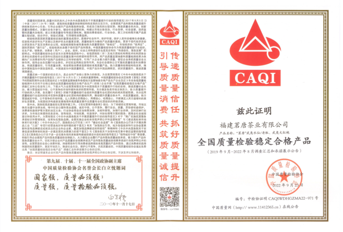 在今年全国“质量月”活动中,福建茗唐茶业有限公司踏着迈向高质量发展的铿锵步伐,凭借强劲实力荣获由中国质量检验协会颁发的“全国质量诚信标杆企业”、“全国茶业行业质量领先品牌”和”全国质量检验稳定合格产品”三大荣誉证书。荣获此次殊荣,不仅是行业和权威机构对茗唐茶企的高度认可,更是对茗唐产品质量的极大肯定。