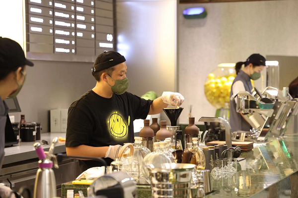 (图中为SMILEY tea产品研发负责人正在进行茶饮制作)