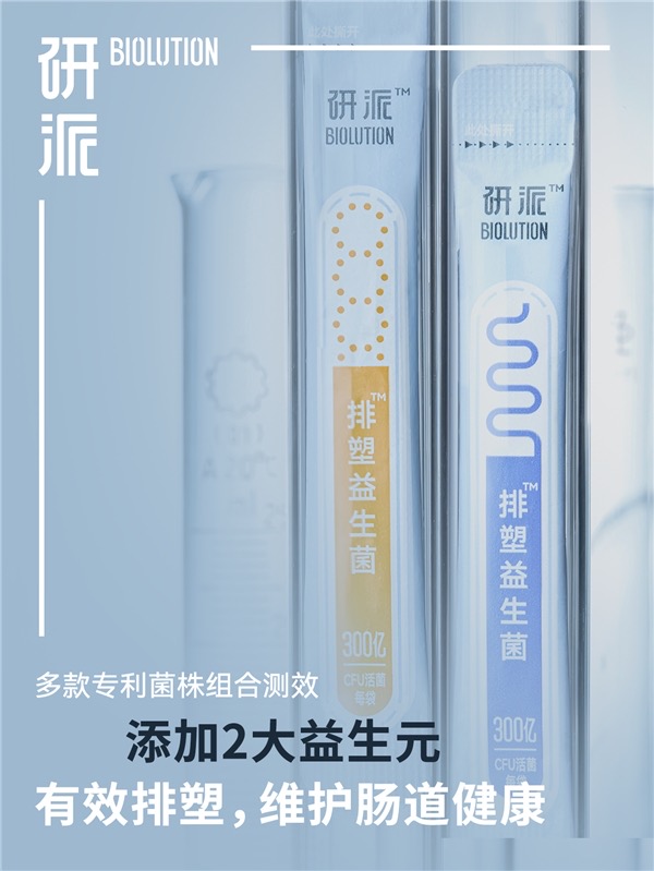 2023年初,研派成功研发出全球首株“排塑”功效的益生菌菌株Droplastic™(即植物乳植杆菌DT88),这一研发成果标志着益生菌在健康领域的一次重大突破,以天然益生菌作为安全排塑方案,直击人体微塑料源头,开拓了益生菌更为广阔的应用前景。2023年12月,研派排塑益生菌产品于天猫正式开售。