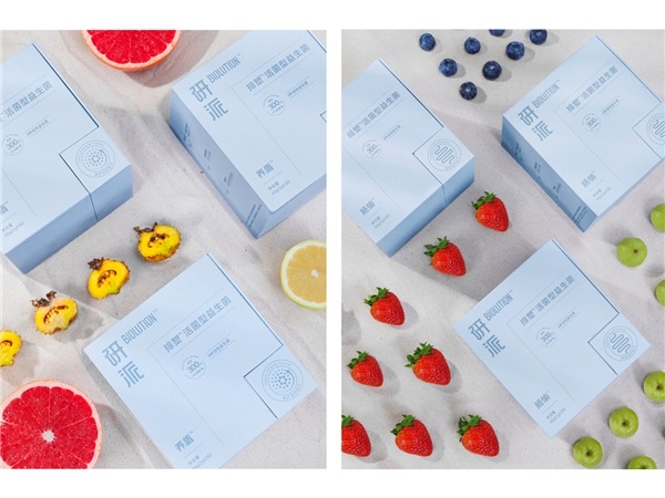 菌株探寻只是革新的第一步,为了进一步打出产品的差异化,在配方口味的调配上,研派跳脱出常规的乳粉、香精配料,以「药食同源」作为切入口,用真实水果粉代替人工甜味剂,实现极简配方与天然好味并存。