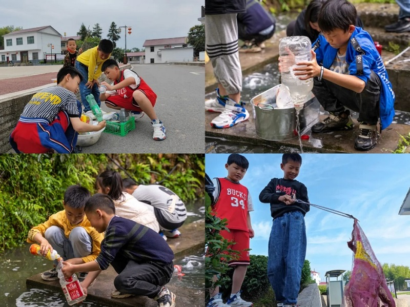 寒溪村的孩子们在收集废旧塑料