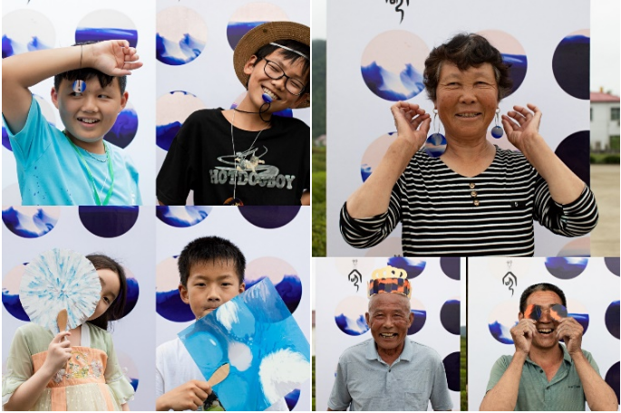 寒溪村的男女老少与再生塑料艺术品(摄影:异想社)