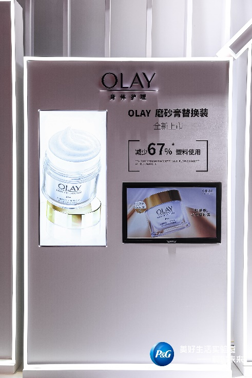 在提倡重复使用方面,OLAY身体磨砂膏全新上市了补充装,可拆卸的替换芯设计,可以减少67%的塑料使用。
