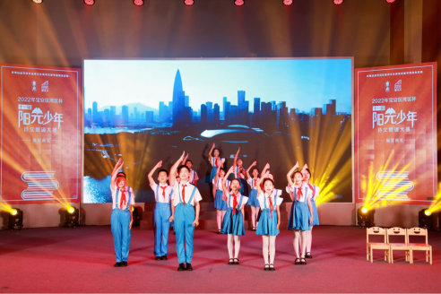 颁奖仪式现场,建安小学与燕山学校被邀请来到现场表演,表演的少年们用稚嫩的童声、饱满的感情、质朴的语言,诉说着改革开放故事、深圳发展历史、粤港澳大湾区建设的美好未来,演出高潮迭起,将现场的评委和网络那端的观众们带进了不同时代的青春场景,精彩演绎让大家身临其境,深深动容。