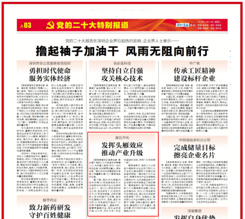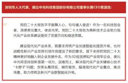 图注:10月18日,《深圳商报》刊发党的二十大反响报道,奥比中光“C位”出镜。