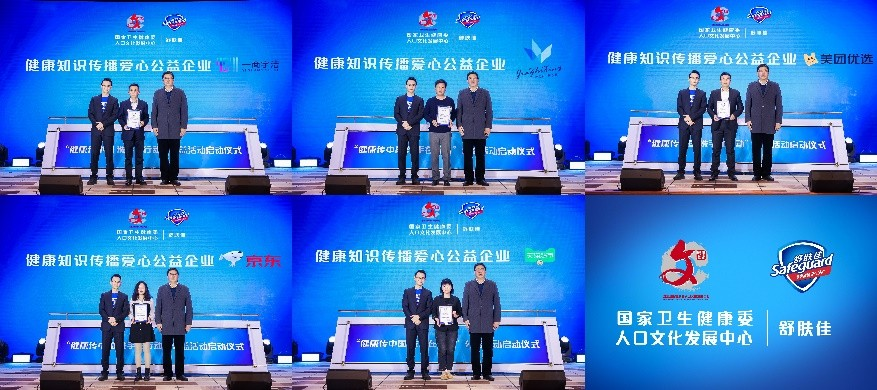 健康传中国的行动也离不开合作伙伴的鼎立支持。启动仪式上,北京一商宇洁商贸有限公司总经理,北京佳之兴京源商贸有限公司总经理,美团优选个护美妆品类高级经理,京东零售集团大商超事业群个护事业部 KA 业务部总监,阿里巴巴集团中国数字商业公共事务部总监上台领取“健康知识传播爱心公益企业“证书。舒肤佳将继续与合作伙伴多渠道覆盖并传递正确洗手知识,携手为大众带来健康。