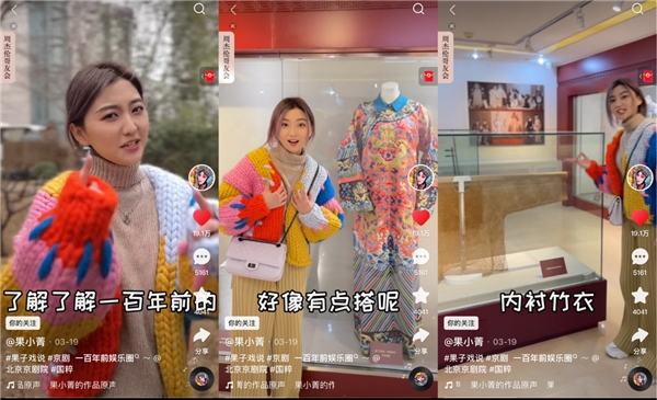 果小菁对于京剧的“另类革新”也受到越来越多圈内人认可,在《国潮盛典》中为果小菁配戏的演员丁云飞原本与她素不相识,筹备间隙也向她讨教起如何在短视频平台拆解京剧文化,临了还感叹一句“做得可真好”。