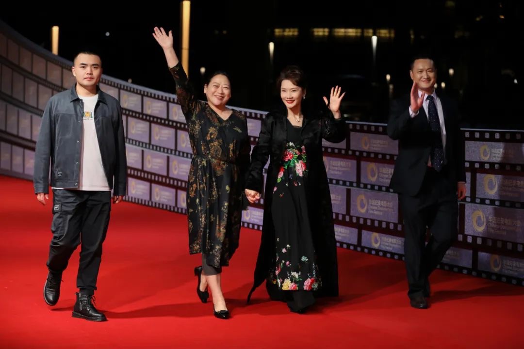 ↑纪录电影《罗长姐》的制片人王世晓(左二)、导演兼摄影金行征(左一)、中国国家话剧院一级演员佟凡(右一)以及被称作“妈妈专业户”的著名演员赵越(右二)