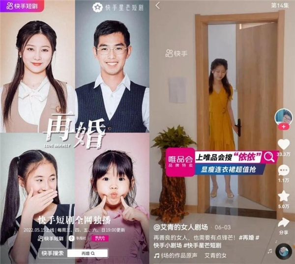 其中,唯品会在今年暑假与家庭情感向短剧《再婚》合作,除了在短剧内容植入品牌心智、实现近10亿播放量以外,还在剧集视频中插入 PLC 转化组件,为品牌活动页面进行导流,高效提升转化率;