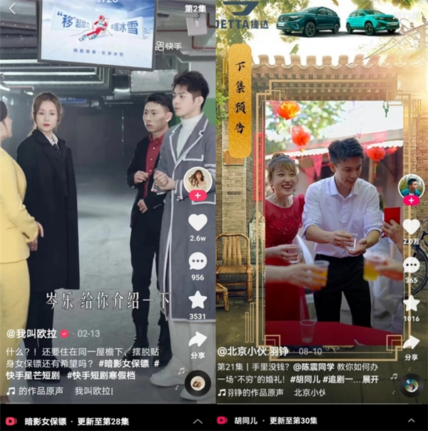 快手短剧依托平台原生土壤快速生长,也逐渐长出带有平台调性的内容特色。快手磁力引擎副总裁毛海峰提到,“快手的短剧内容有很大比例是来自快手原生达人、原生内容,这样的作品更贴近用户的生活、符合粉丝的观赏习惯,也是快手短剧的特色之一。”