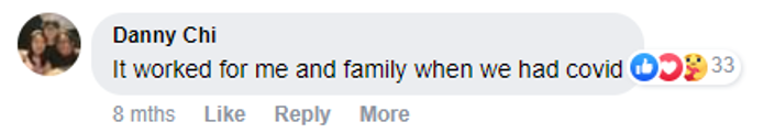 用户“Anne Lim”说,“当我丈夫感染时(在德尔塔那波)是管用的。它帮助祛除体内的‘热’,他感觉好多了。”