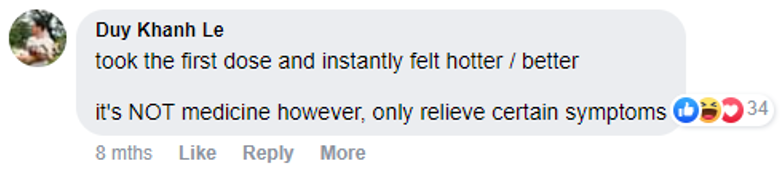 网友“Duy Khanh Le”表示:“服用第一剂后立刻感觉好多了。但这并不是药物,它只是帮助缓解症状。”