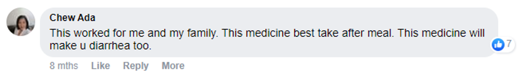 “Chew Ada”表示:“对我和我的家人都有效。这种药最好在饭后服用,它可能会让你腹泻。”