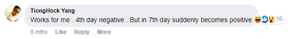 “TiongHock Yang”:“对我有效。第4天我就转阴了。但是我第7天又阳了。”