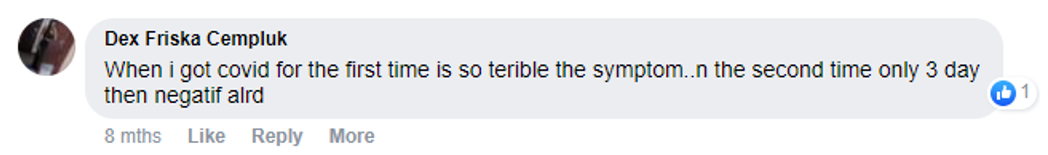 用户“Dex Friska Cempluk”:“当我第一次感染时,症状可严重了。第二次短短3天我就转阴了。”