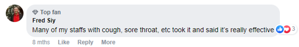 “Fred Siy”:“我身边很多有咳嗽、喉咙痛等症状的员工的用了。他们说非常有效。”