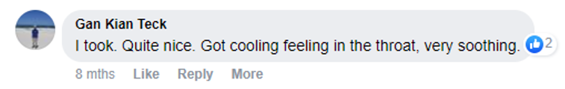“Gan Kian Teck”:“我用了,相当不错。喉咙里有凉凉的感觉,非常舒服。”