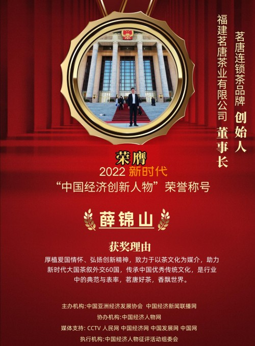 “茗唐”连锁茶品牌创始人薛锦山荣膺2022新时代“中国经济创新人物”荣誉称号