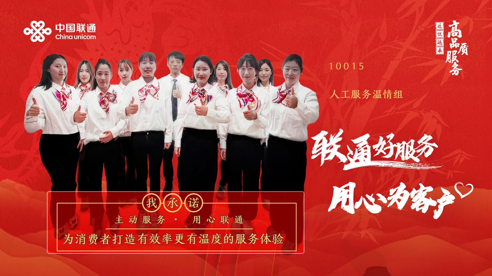 接下来,10015人工服务温情组将继续竭尽全力专注于服务流程的持续优化,同时全面提升班组的服务水准和业务技能。充分发挥自身的专业优势与深厚的服务热情,致力于为广大客户提供更为卓越、高效且人性化的服务体验,成为联通高品质服务的杰出代表和行业标杆!