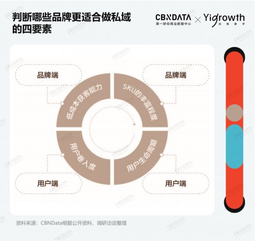 其一,并非所有品牌都适合做私域。除客单价、复购率两大主流判断标准外,品牌还需要从更多元的维度去衡量。一般而言,品牌如果具备低成本获客渠道,品类组合丰富,复购周期较快且有一定卷入度,则比较适合入局私域。
