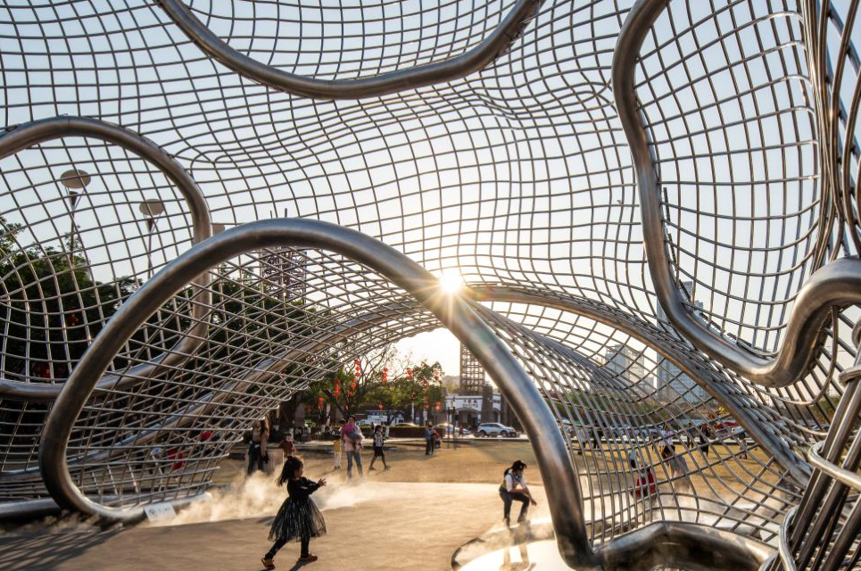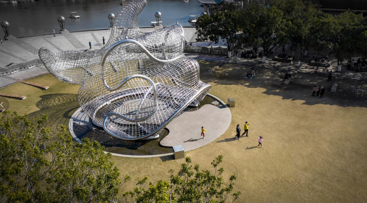 公共艺术在今天的中国,正在慢慢被大众熟悉和接受,并作为城市美好生活的必要养分,滋养着人们的日常生活。它的创作形式是多样的,所要表达的目的也千差万别,实现的效果更是良莠不齐。随着大众的审美趣味逐日提高,在厌倦了花花绿绿的商场拱门和公园门前乖张的石狮子之后,一种更加能表达中国文化自信,并以抽象的观念去呈现的艺术作品逐渐浮出水面。