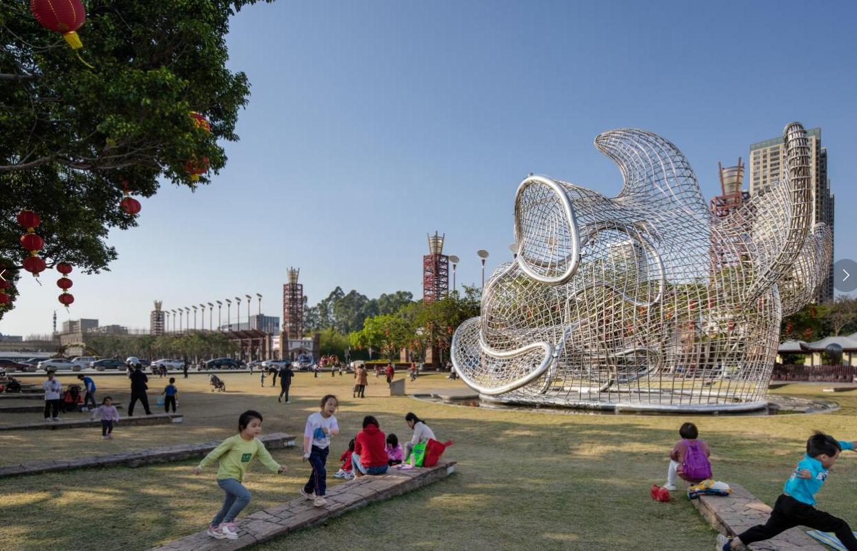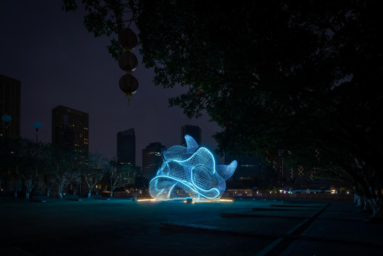 位于佛山千灯湖的"醒",大概就是这样一件作品。他的创作原动力源于对岭南狮头文化的演绎,通过对其筋骨和精神性的提炼,用当代的材料(不锈钢)和通透的视觉效果,展现了一个不同寻常的狮头形象。