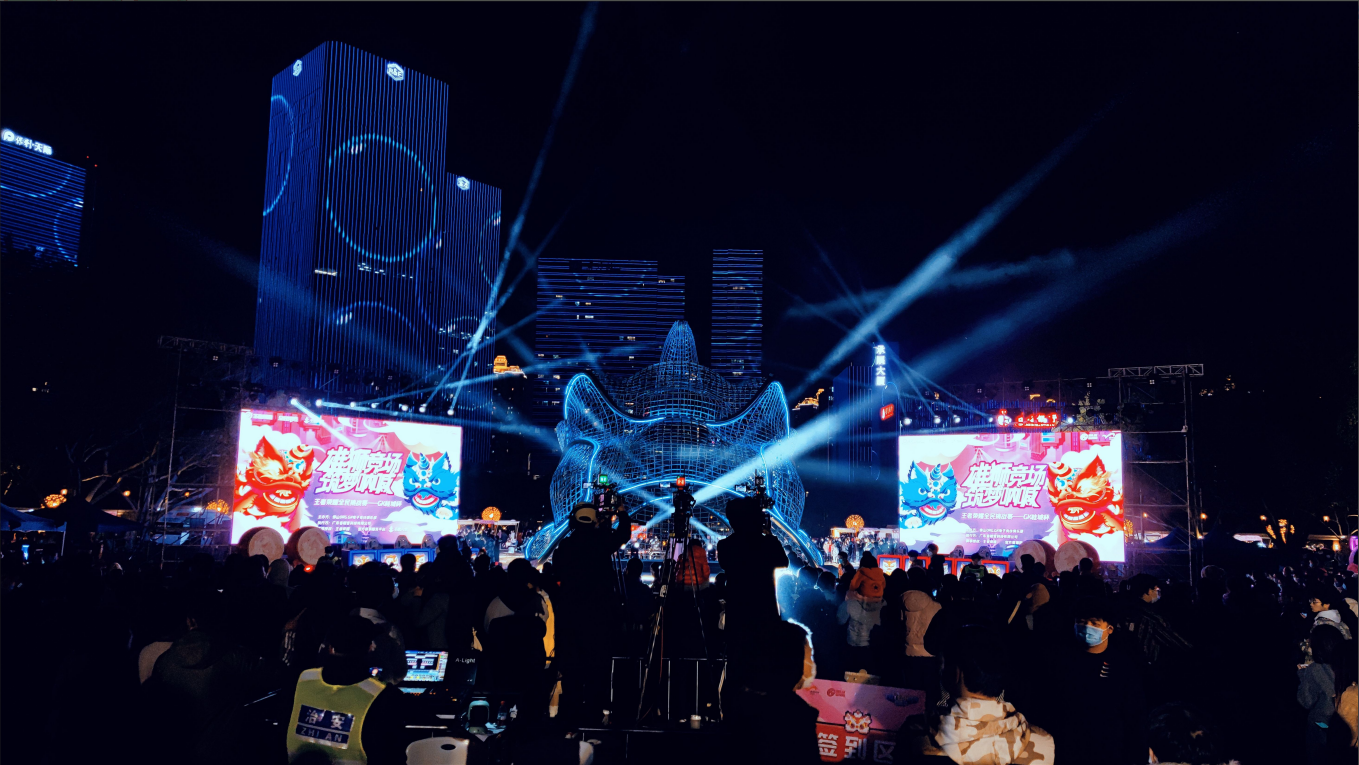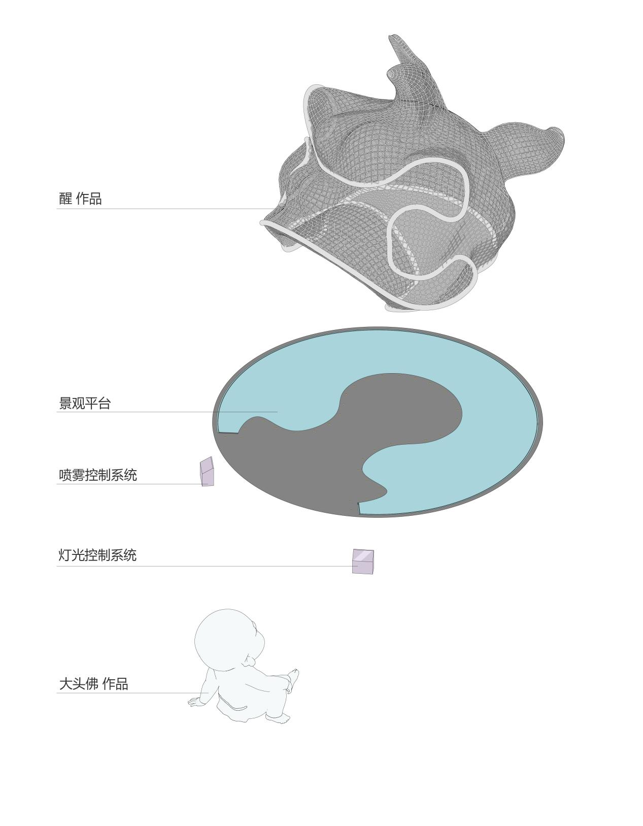 除了对于传统、尺度、材料的思考,最让我感动的,还是因为它是一件能够被使用的雕塑这件事。一件艺术品之所以产生了公共性,并不是因为其被放置在了所谓的公共场所,而是源于创作者对于作品的互动性的思考。"醒"是一件能够钻进去的作品,狮头内部的宏大体验让人沉迷于这种尺度所创造的视觉幻象中,但这只是其平时的作用;"醒"同时还是一个剧场,音乐会、发布会、城市的节日庆典都可以借由这个狮头的大嘴当作舞台,在被精心隐藏的灯光的勾勒下,上演一场与传统交融的当代大戏。