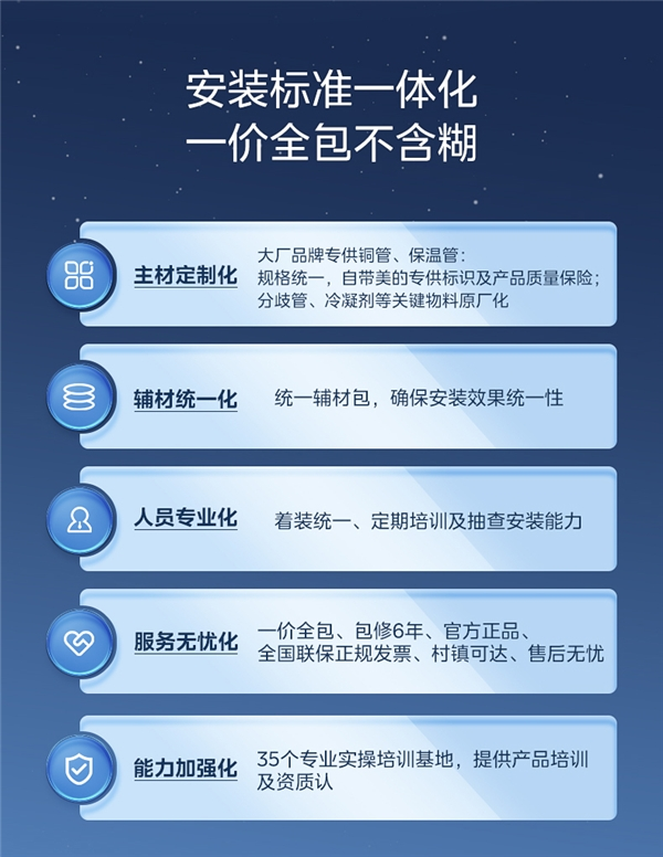 消费者决定购买产品的两个决定性因素,一是性能二是服务。美的星光科技版风管机新品上市享一价全包服务,消除想购买风管机家庭的最后一丝顾虑,针对中央空调行业中风管机安装环节费用不透明、服务限制多等痛点,美的给出了自己的解决方案。在送货上门到安装的全流程中,消费者不仅不用额外支付安装人工费、高空费、铜管加长费、墙体打孔费等,甚至加长风口也是免费的,不玩隐形消费,无套路真全包,老人自己在家也能轻松应对。