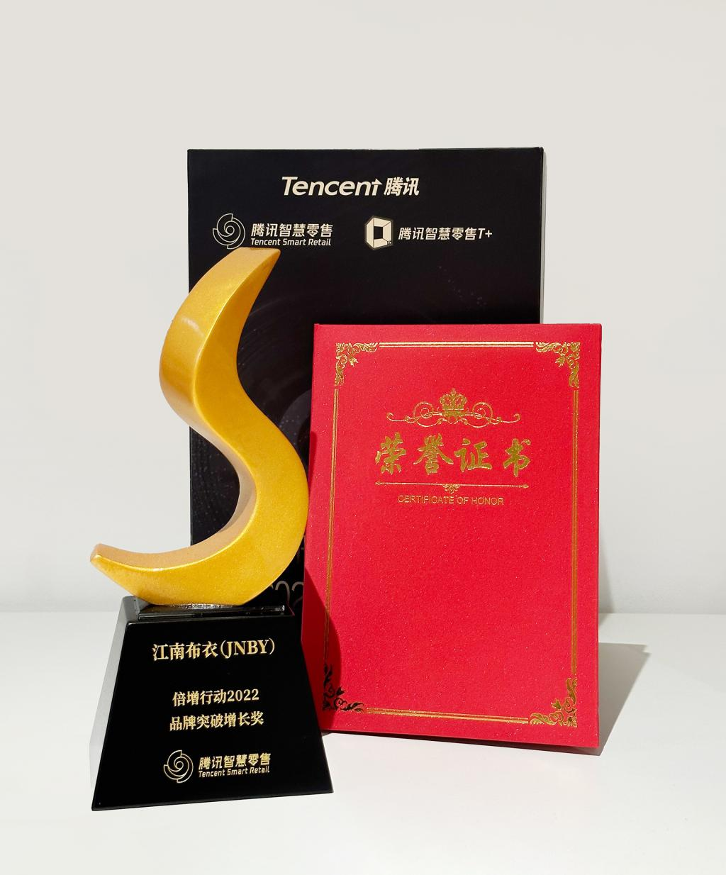 2 月 23-24 日,腾讯智慧零售 2022 倍增行动颁奖典礼于云南举行。作为业内专业、权威的私域竞技赛场,此次倍增行动吸引了来自 20 多个行业的 237 家零售头部企业参与角逐,江南布衣最终摘得 " 品牌突破增长奖 ",江南布衣首席营销官黄盛受邀莅临现场,并代表江南布衣领取奖项。
