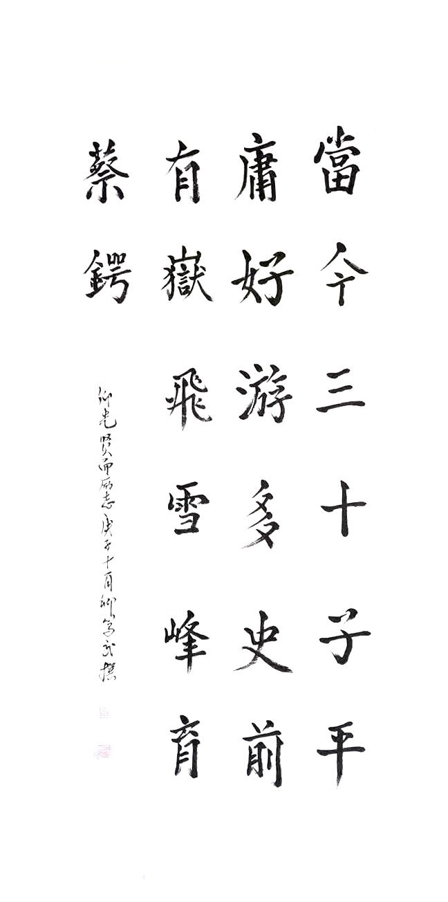 2007年3月首次以“净化心灵”之作参赛“纪念邓小平南巡讲话十五周年全国书画大赛”获奖入编,后陆续以“实事求是”“为人民服务”、“大家凤范”、“追求……”、“人间正道是沧桑”“龙”、“回家了,真好”之作参赛全国性书画大赛中均获奖入编,现共四十余次获全国书法大赛“金”、“银”奖之多,最近有幸被徐悲鸿纪念馆于幕编《当代中国书画领军人物》一书时而应邀入编,从事实上肯定了书者十余年来的真书生涯,同时也为其从事书法创作注入了新的动力,并使其倍感传承祖国传统文化之期待与重托。