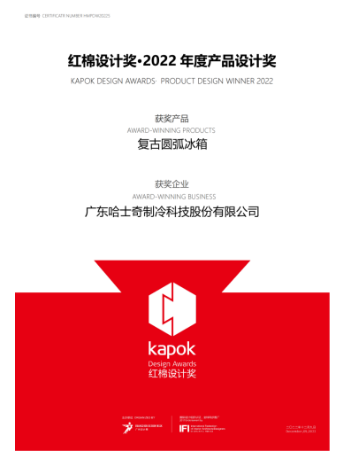 HCK哈士奇紧握冰箱行业未来的机遇,让冰箱突破“储存+保鲜”的功能范畴,从实用性向艺术美学层面进发,所推出的产品先后斩获“红棉设计奖”、“当代好设计奖”、“广交会CF奖”等行业内重量级荣誉。