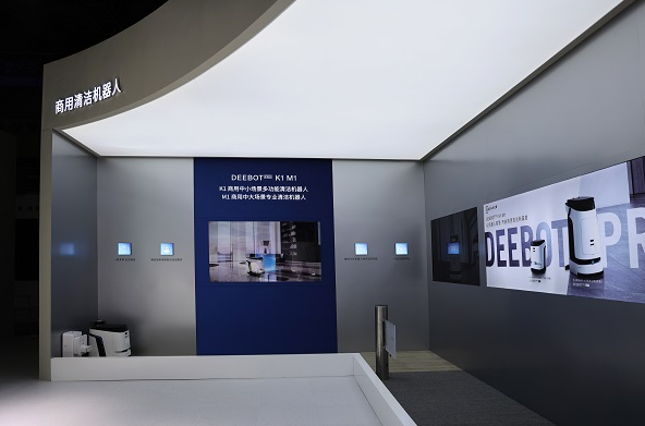 科沃斯DEEBOT PRO K1和M1一大一小两台机器人配合工作,通过科沃斯首创的HIVE系统实现多机协同,大大提高了商用环境清洁效率和服务质量。匹配不同场景的智慧清洁解决方案,科沃斯商用清洁机器人可以满足综合商业体、写字楼、酒店等不同场景的清洁需求,全租赁的商业模式也降低了商用客户的使用成本,在展会现场收获众多用户的关注和咨询。