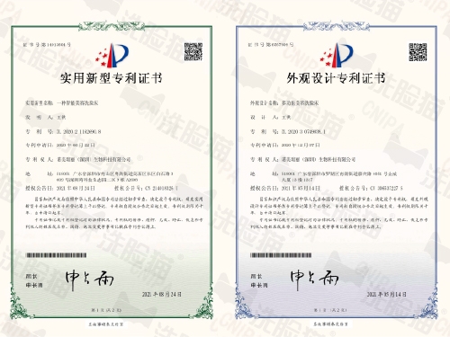 2021年5月14日,洗脸猫自研洗脸床获得外观专利证书。2021年8月24日,洗脸猫自研洗脸床获得实用新型专利证书。