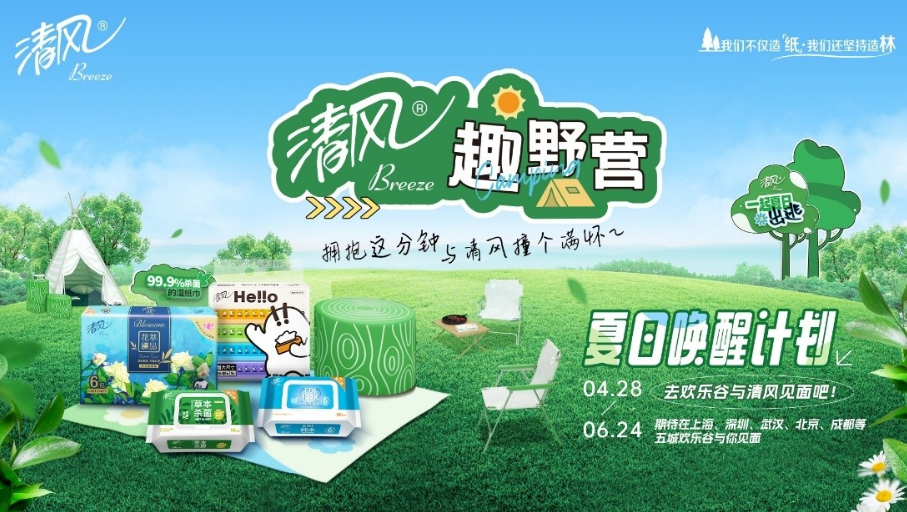 一场回归自然的旅途,因为新世代年轻群体层出不穷的创造力,演化出了更加丰富多样、新颖独特的“露营+”玩法。正是感受到了现代年轻消费群体对于潮流生活方式的高涨热情,国民级纸巾品牌清风将联袂欢乐谷在全国五大城市打造出多个绿色自然、极具品牌特色的野营场地,在清凉萌动的初夏为60万都市年轻消费群体带来一场亲近自然的撒欢“野趣”之旅,让清风“绿色低碳,纸为下一代”的品牌理念得以深入人心,也让更多的年轻消费者享受到一站式的购物体验,感受到独属于夏日的青春活力,收获一份充满期待的夏日旅程。