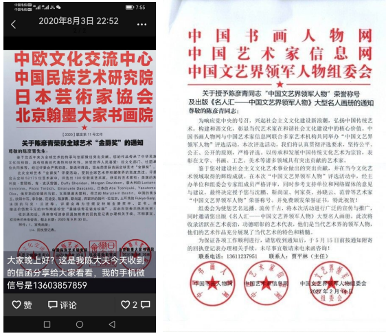 陈彦青在书法领域取得卓越的成就:感动中国文化人物、感动中国艺术人物、新中国书画八大家,中国艺术六大名家、国学九大名家、中国当代艺术协会终身名誉主席、中共十八大题贺金奖获得者、十八大文艺代表人物、中共十八大授予:百位中国文化名人、中共十八大题贺艺术名家。中国兰亭.工艺.美术终身奖成就奖,中国书画收藏具投资价值二十位艺术家,2013年感动世界年度人物。新华艺术网副主席。国学领袖、领袖国学九大名家、2014年中国十大艺术家、中国艺圣、非物质文化遗产传承人物。