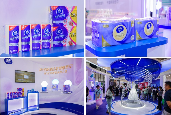 维达品牌作为行业引领者之一,带来了具有革新技术的维达棉韧奢柔羊绒感纸巾,以“棉感+柔软+厚实”于一体的全新用纸体验吸引诸多消费者;与此同时,维达可水洗厨房纸亦惊喜亮相,这款产品实现3倍吸油吸水,厚韧不易破,超越当前市面上其他厨房纸的性能,引领国民家庭清洁进入3.0时代。而独特的纸巾婚纱也作为品牌重要资产在展位中展示,充分展现了维达纸巾的“坚韧”特质,引来现场观众的热议及好评。