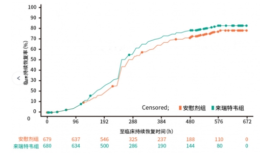 来瑞特韦片开展的随机、双盲、安慰剂对照Ⅲ期临床研究以至持续临床恢复时间为主要疗效终点,结果显示,与安慰剂组相比,用药组显著缩短患者11项临床症状的至持续临床恢复时间;对症治疗采用复合策略后较安慰剂组至临床持续恢复时间缩短41h。从药效来看,不论是野生株还是α、β、BA.5、BF.7等毒株,来瑞特韦片都有抗病毒作用,因此该药对于各种原株和变异株都有全覆盖的能力。