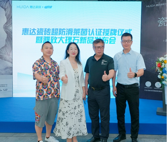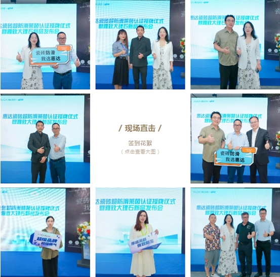以及网易家居、腾讯家居(智造联盟)、搜狐焦点、新浪家居、陶城报、陶瓷资讯、中国陶瓷网、陶业要闻、华夏陶瓷网、陶瓷信息、中陶家居网、建材周刊、华南家居装修网、直线传媒、华人设计师网、陶瓷新闻网、品牌中国等媒体的代表们;来自全国各地的惠达瓷砖经销商共同出席本次活动,见证国内惠达瓷砖首张“德国莱茵认证”超防滑证书颁发仪式和第三代超防滑新品“雅致大理石”发布。