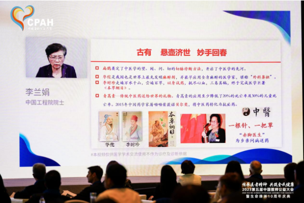 生命至上、健康至上,传承医者精神是承前启后的使命。会上,中国工程院院士李兰娟以视频的形式做了主题为《传承医者精神 推动医疗发展》的报告。她表示,新时代的医疗要服务患者,急病人所急,一心为解决病人疾苦着想。不断增加保护国家保护人民的责任感和使命感,主动承担社会责任,全人全程、尽显人文关怀。